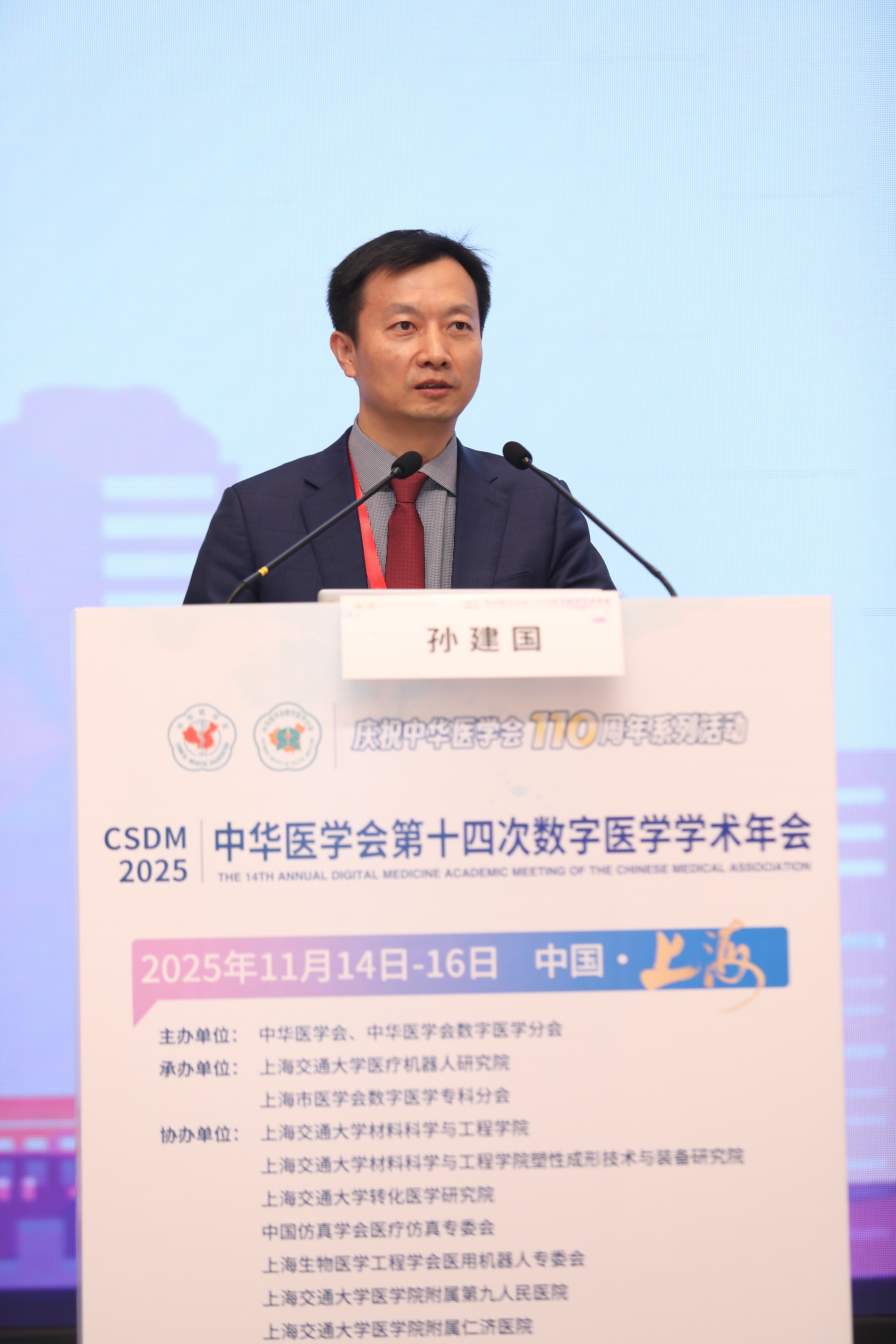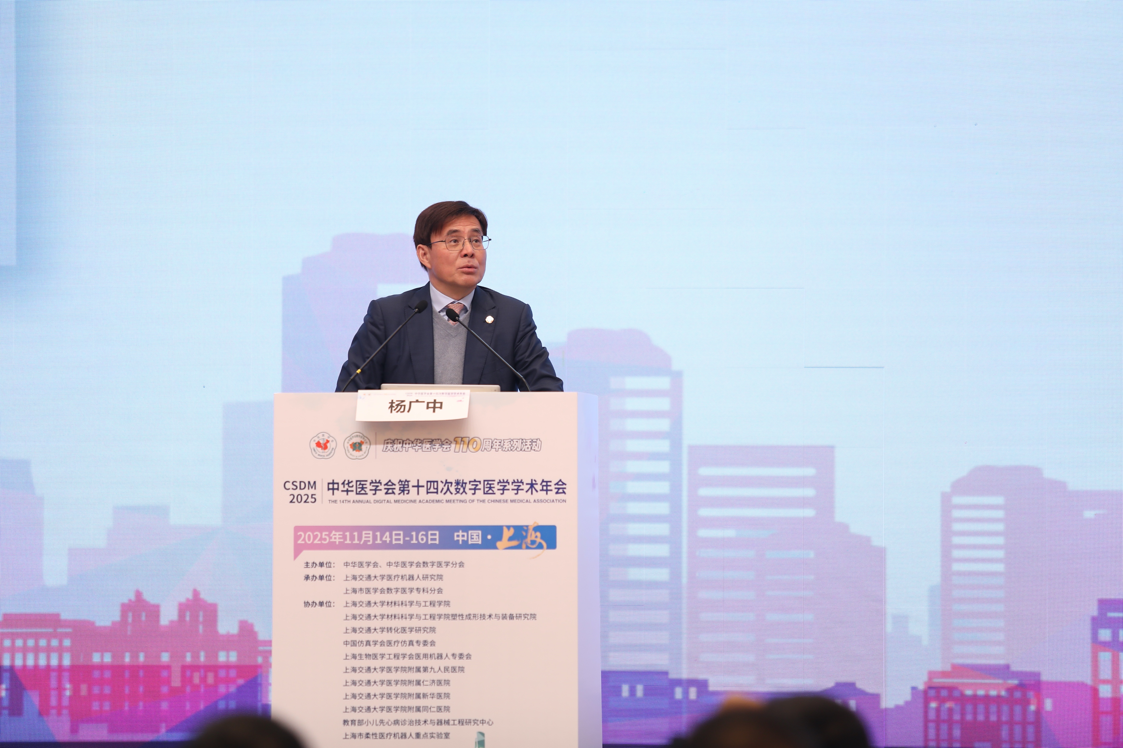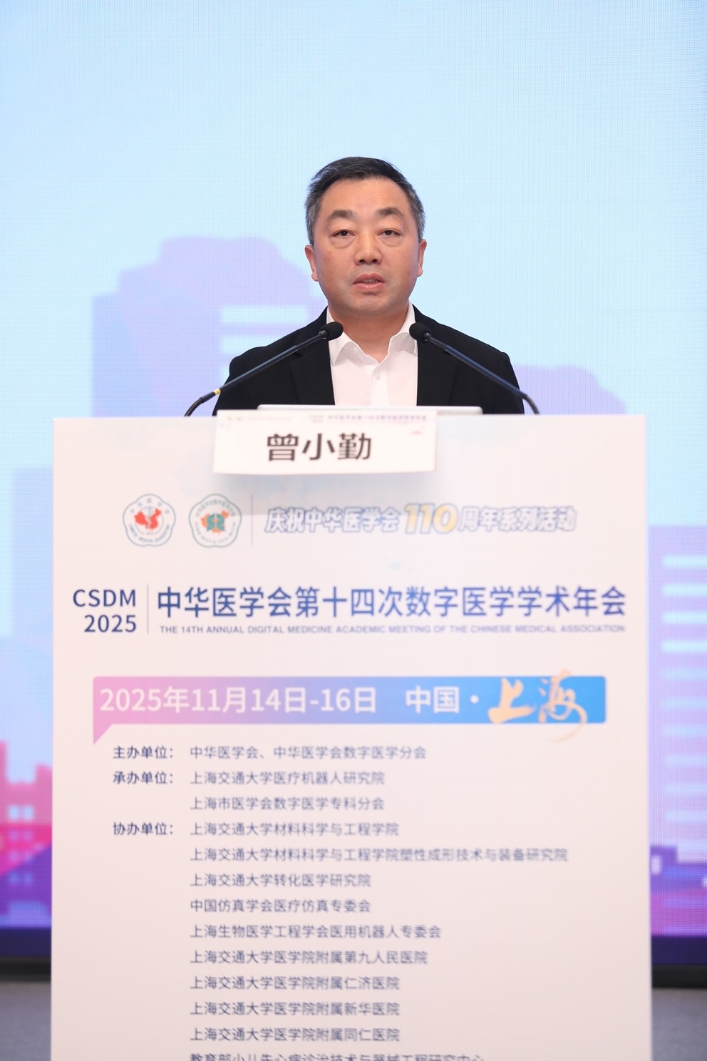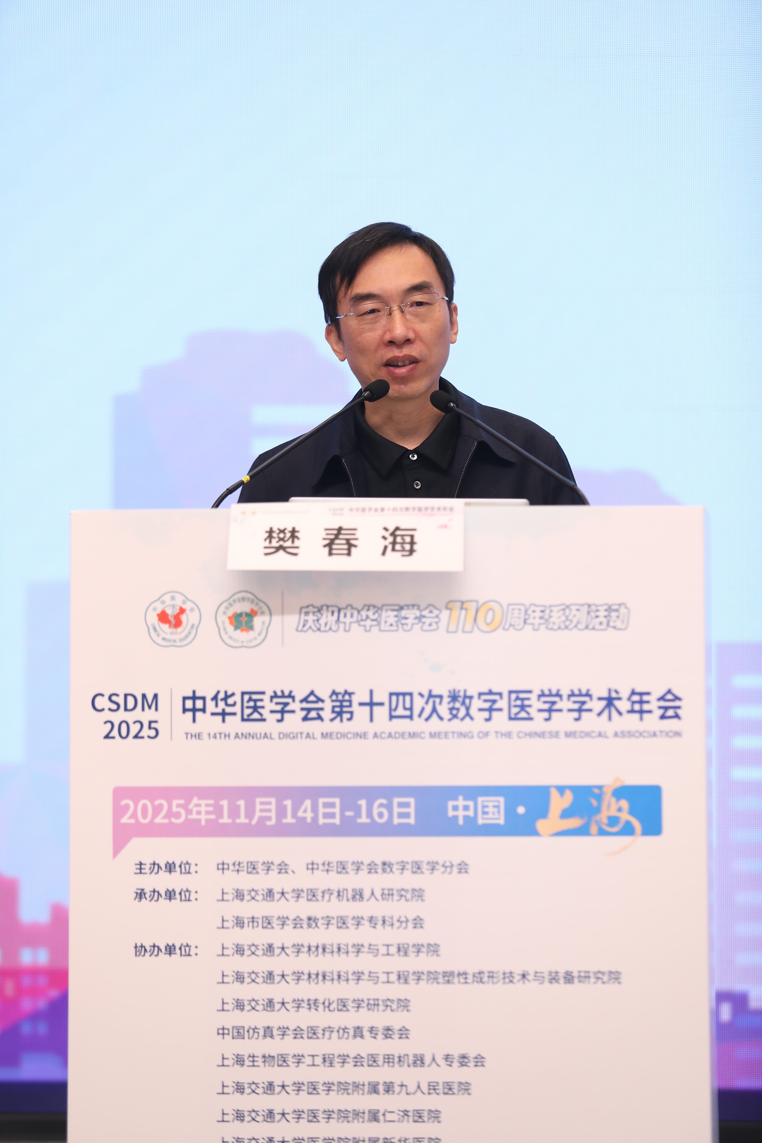 11月14日至16日,中华医学会第十四次全国数字医学学术年会在上海举行。本次会议由中华医学会主办,上海市医学会、上海交通大学医疗机器人研究院承办,上海交通大学材料科学与工程学院、转化医学研究院,中国仿真学会医疗仿真专委会,上海生物医学工程学会医用机器人专委会,上海交通大学医学院附属第九人民医院、仁济医院、新华医院、同仁医院,教育部小儿先心病诊治技术与器械工程研究中心,上海市柔性医疗机器人重点实验室协办。