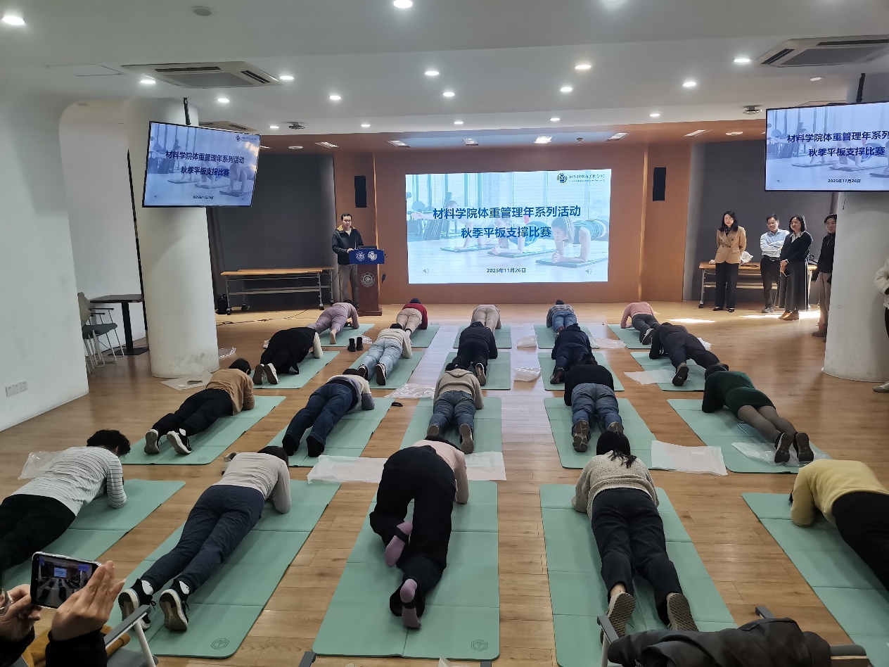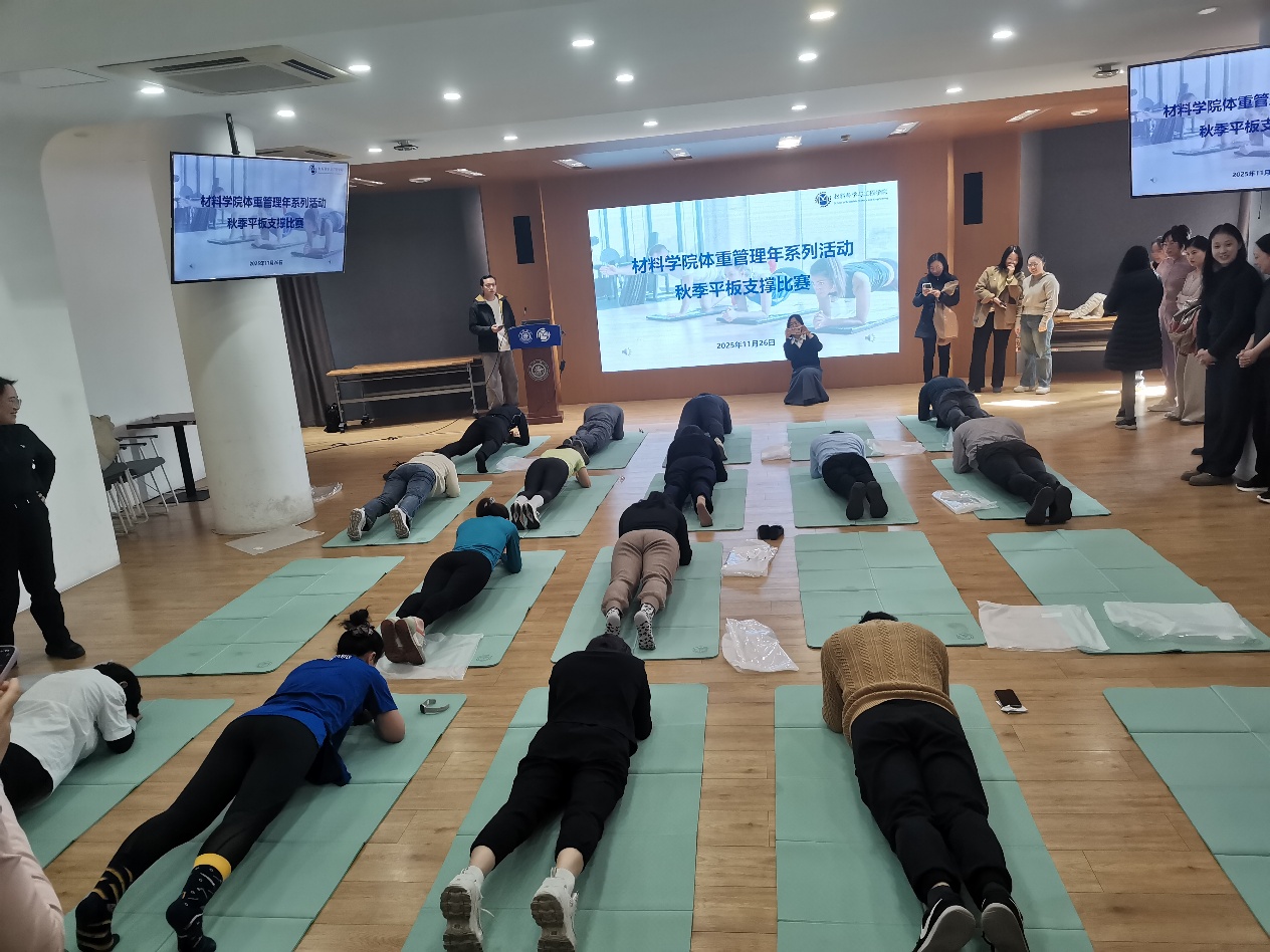 11 月 26 日中午,由材料科学与工程学院工会精心策划的 “体重管理年” 系列活动之秋季平板支撑比赛,在徐祖耀楼 A500 活力启幕。全院教职工踊跃报名、积极参赛,以坚韧不拔的姿态诠释体育精神,用坚持不懈的毅力展现材料人昂扬向上的奋进风采。